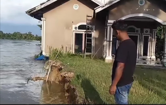 Rumah Warga Desa Tanjung Bunga Terancam Masuk Sungai Kampar Akibat Longsor