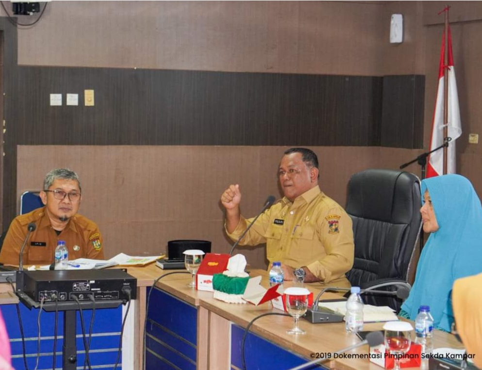 Bangkinang – Penjabat Sekda Kampar Drs. H. Yusri, M.Si, Ketua TP-PKK Kabupaten Kampar Ibu Ricana Djayanti Hambali, Didampingi Kepala DPPKBP3A Kabupaten Kampar Drs. H. Edi Afrizal,M.Si, Kepala Dinas Kesehatan dr.Asmara Fitra Abadi,MM, membuka Rapat Koordinasi Bapak Asuh Anak Stunting, Senen 19/2/24 .