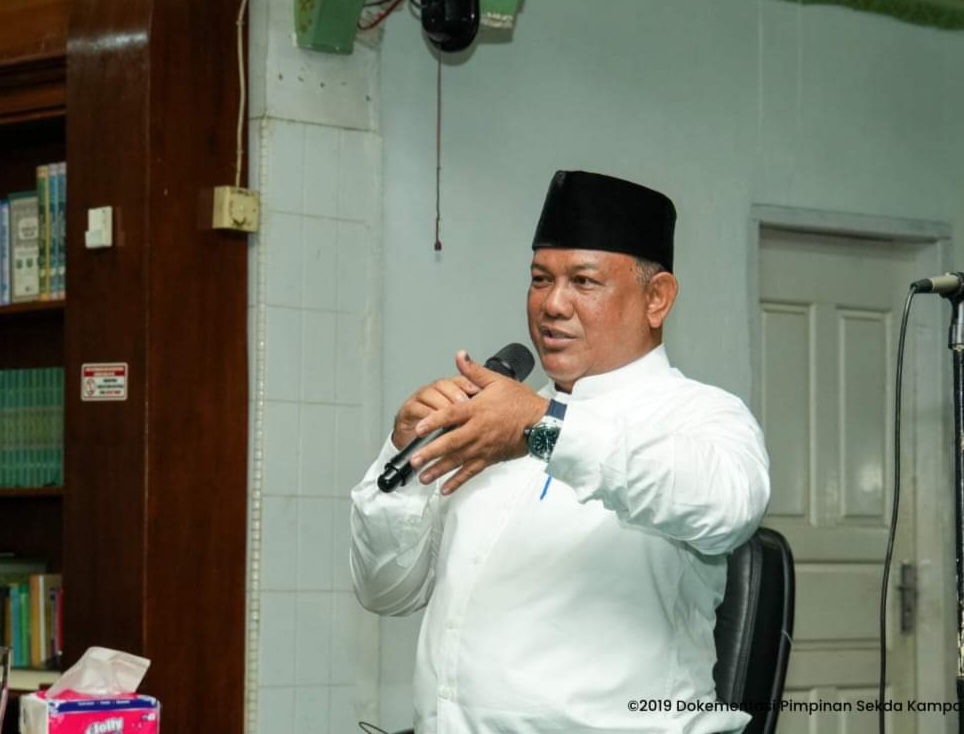Bangkinang – Penjabat Bupati Kampar H.Hambali.SE.MH yang diwakili Penjabat Sekda Kampar Drs.Yusri.M.Si menghadiri Isra’ Mi’Raj di Mesjid At-Taubah .Selasa 20/2/24 .