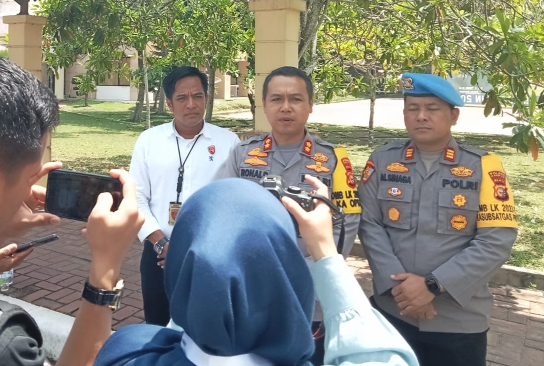 Kapolres Kampar AKBP Ronald Sumaja didampingi Kasi Propam dan Kasi Humas saat dikonfirmasi, Senin (26/02/2024) usai pembukaan rapat pleno yang dilangsungkan di aula kantor Bupati Kampar menyampaikan bahwa sebanyak 164 personil Polres Kampar dilibatkan untuk pengamanan.