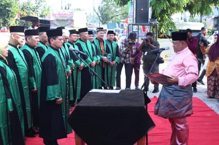 BANGKINANG – Usai melantik 120 dewan Hakim yang bertugas, Pj Bupati Kampar diwakili Pj Sekda Kampar Yusri melepas pawai ta’aruf Musabaqoh Tilawatil Qur’an (MTQ) ke-53 tingkat Kabupaten Kampar di Kecamatan Perhentian Raja, Kamis (29/2/224).
