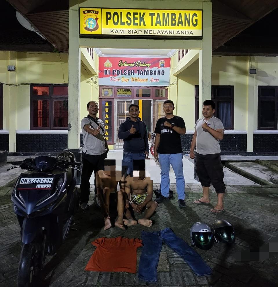 TAMBANG- Dua pelaku berinisial NA (23) dan RI (25) warga Desa Tarai Bangun, Kecamatan Tambang, Kabupaten Kampar ditangkap usai menjambret emas di Jalan Fajar Desa Tarai Bangun, Kecamatan Tambang Minggu (25/2/2024) sekira pukul 10.00 WIB.