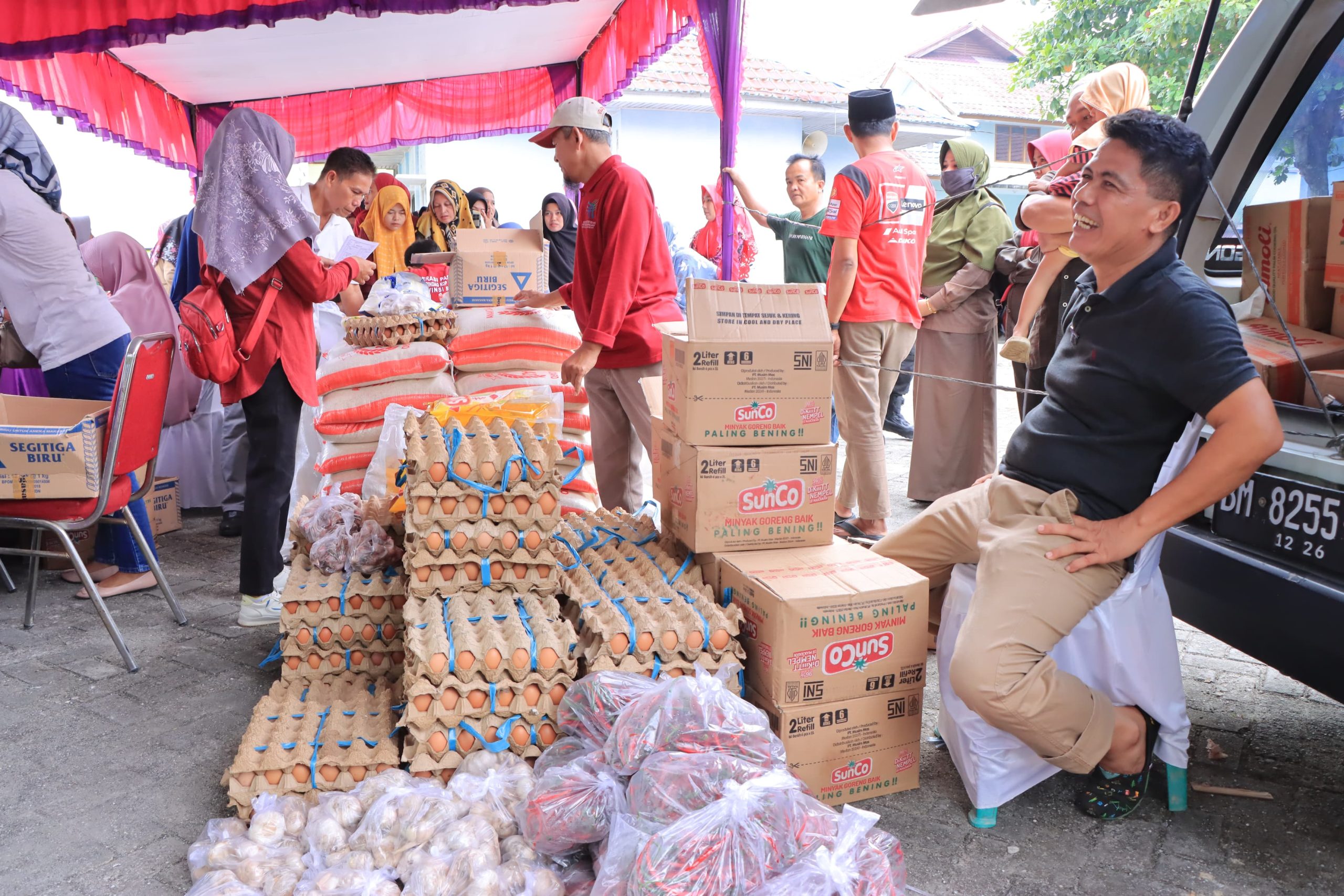 Bisa dilihat, minyak goreng, beras, telor, tepung dan gula pasir diberi harga yang yang relatif cukup murah dari harga di pasaran saat ini. Dan tampak masyarakat antusias dalam hal ini,” ujarnya.