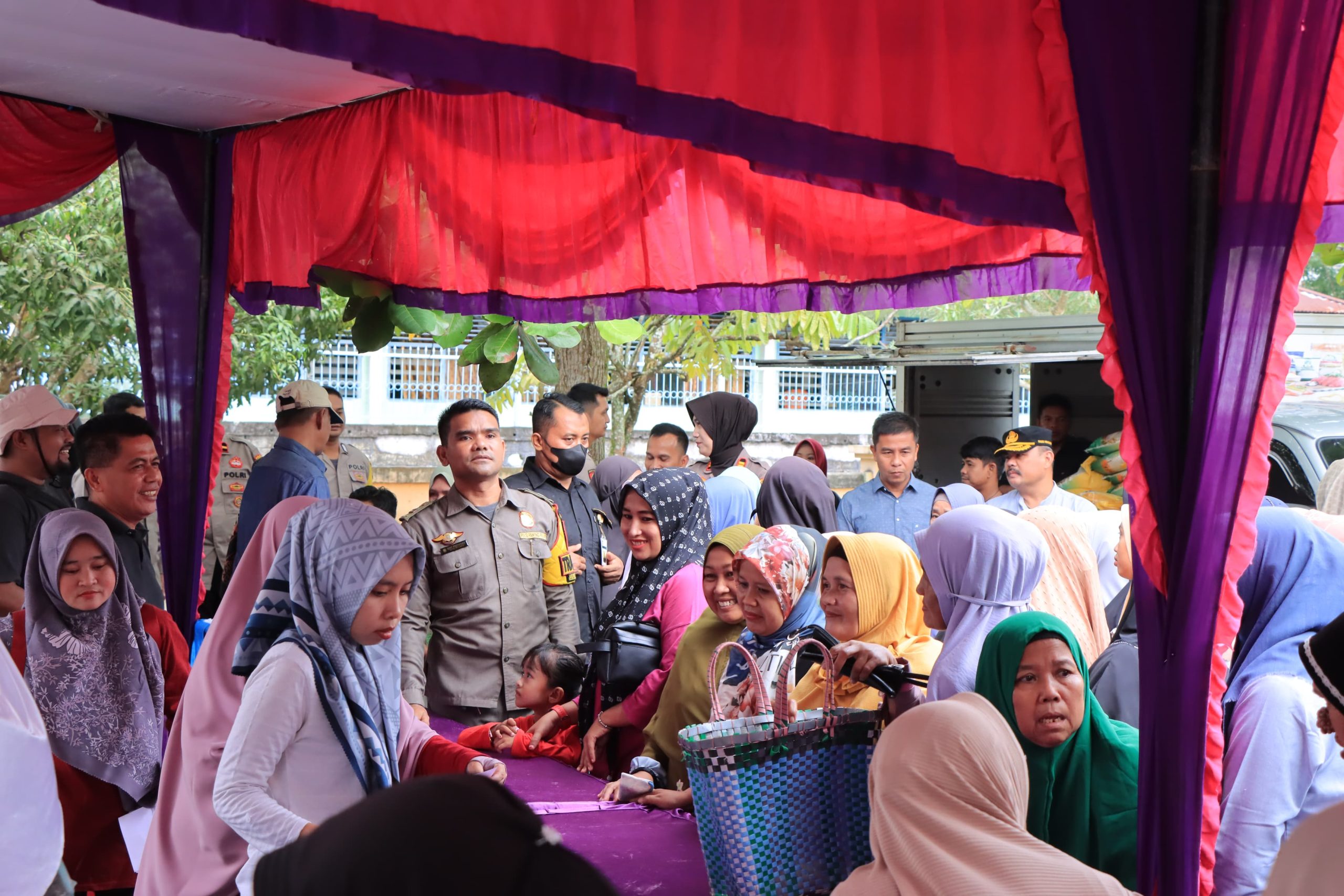 AIRTIRIS- Disperindagkop dan UKM Kabupaten Kampar gelar pasar murah guna untuk mempercepat pulihkan perekonomian masyarakat. Pasar murah ini diadakan di halaman kantor Camat Kampar, Sabtu (23/3/2024).