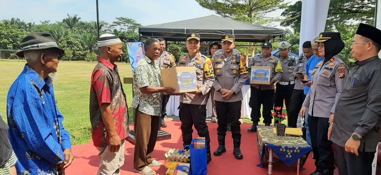 TAPUNG- Dalan rangka menyambut ilIdul Fitri 1445 H tahun 2024 Polres Kampar bagi-bagi sembako di alun-alun Desa Tanjung Sawit, Kecamatan Tapung Kabupaten Kampar, Jum’at (5/4/2024) sekira pukul 13.30 Wib.