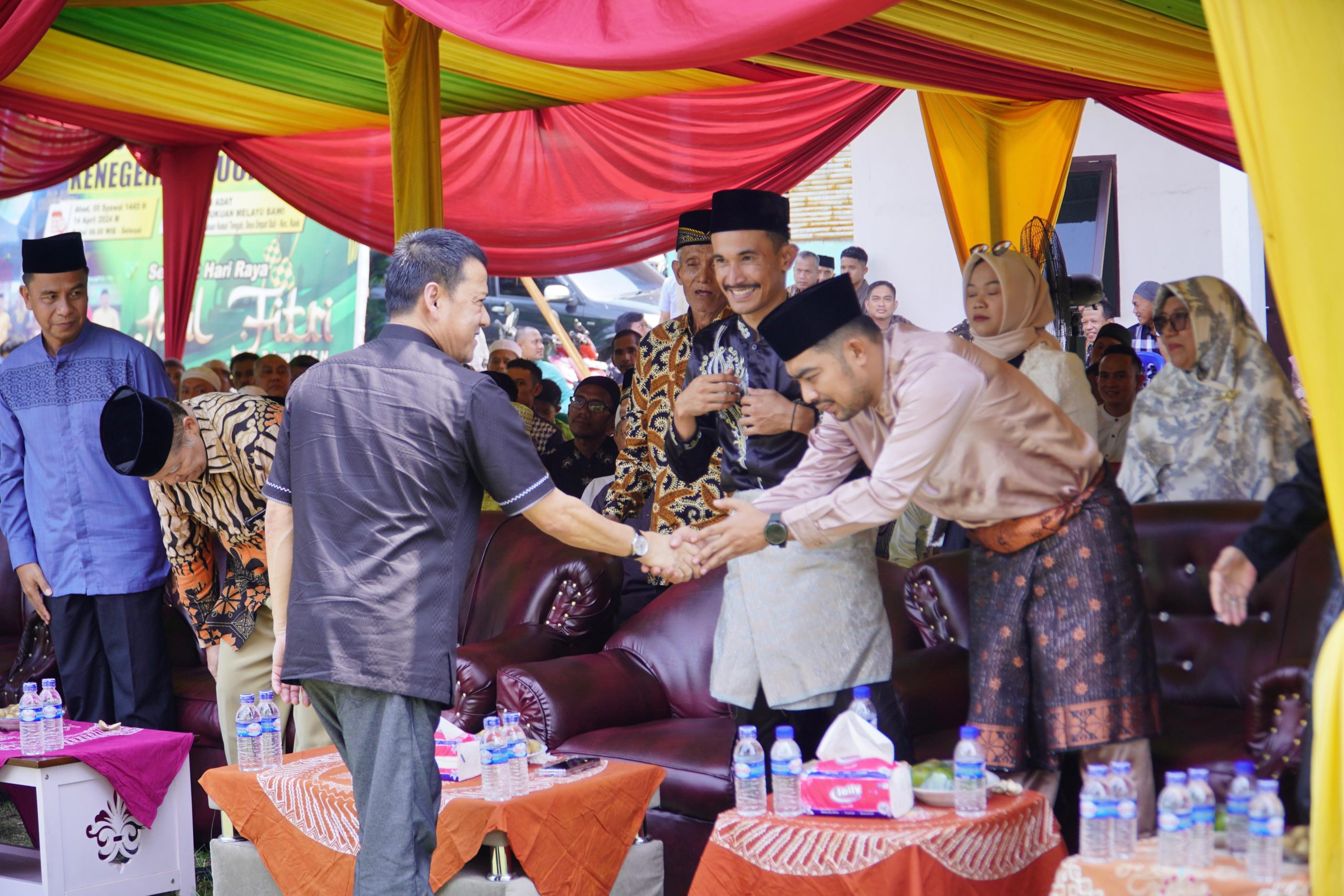 KUOK – Pj Bupati Kampar, Hambali hadiri halal bihalal Persukuan Melayu Bawi di Rumah Adat Persukuan Melayu Bawi, di Dusun Kepuh Tengah, Desa Empat Balai, Kecamatan Kuok, Ahad (14/4/2024).