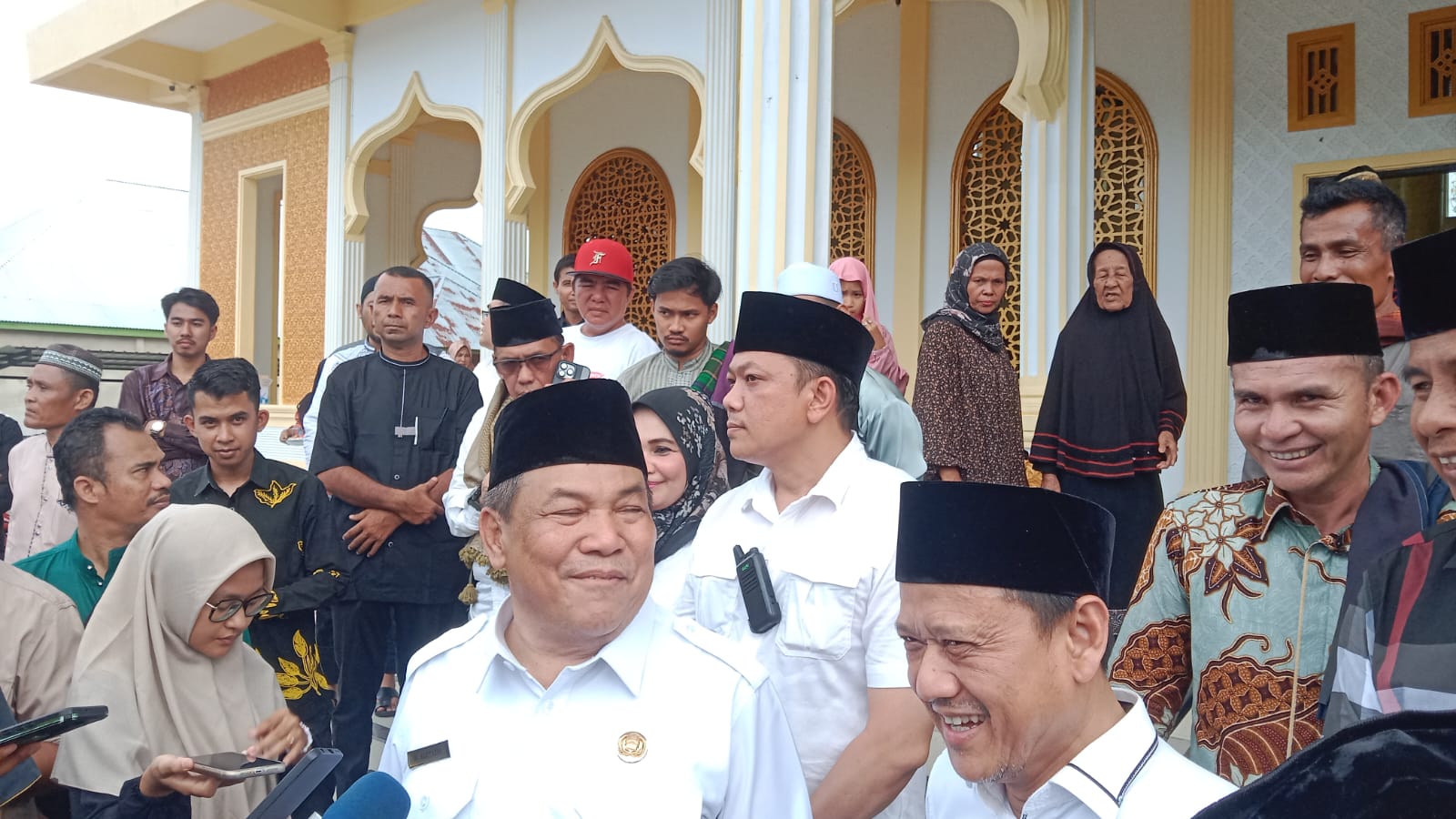 BANGKINANG – Pejabat Gubernur Riau Ir H SF Hariyanto, MT mengapresiasi tradisi ziarah kubur hari raya enam di Bangkinang Seberang Kabupaten Kampar. PJ Gubri ikut membaur dengan warga DusunTeratak Desa Sipungguk Kecamatan Salo dengan makan bajambau usai pelaksaan ziarah kubur di Mesjid An-Nur Dusun Teratak Desa Sipungguk Kecamatan Salo, Rabu (17/4/2024).