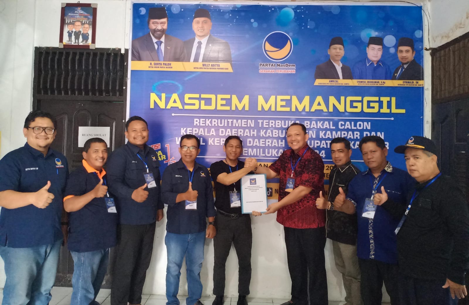 BANGKINANG – Anggota DPRD Provinsi Riau periode 2019-2024 H Nur Zafri mengambil formulir pendaftaran Bakal Calon Bupati Kampar di partai Nasional Demokrat (NasDem) dan Partai Kebangkitan Bangsa (PKB).
