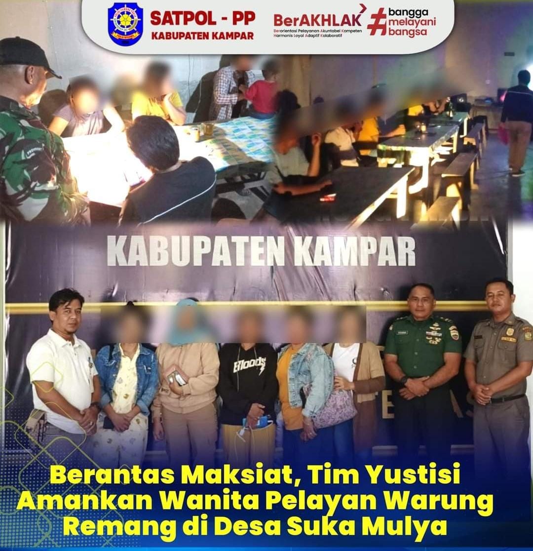Tuahsejawat.com, Kampar — Tim yustisi Kabupaten Kampar melaksanakan penertiban terhadap warung remang-remang di Desa Suka Mulya Kecamatan Bangkinang, Kamis, 13 Juni 2024.