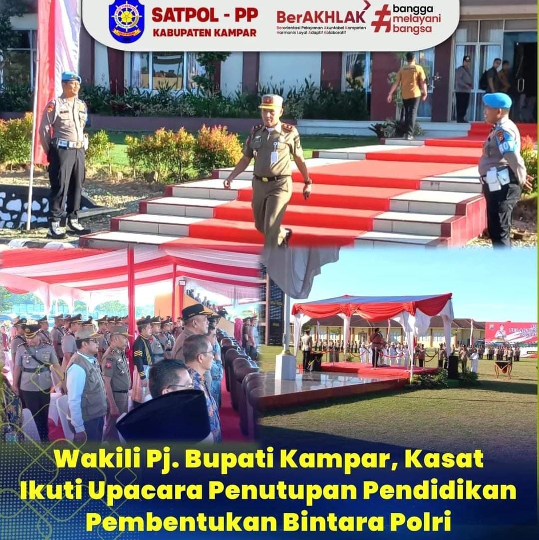Tuahsejawat.com, Kampar — Pj.Bupati Kampar yang di wakili Kasat Pol PP hadiri upacara penutupan Pendidikan Pembentukan Bintara (Diktukba) Polri Sekolah Polisi Negara (SPN) Polda Riau Tahun Ajaran (TA) 2023 – 2024 di Lapangan Utama SPN Polda Riau, Kecamatan Tambang, pada Kamis, (11/07/2024).