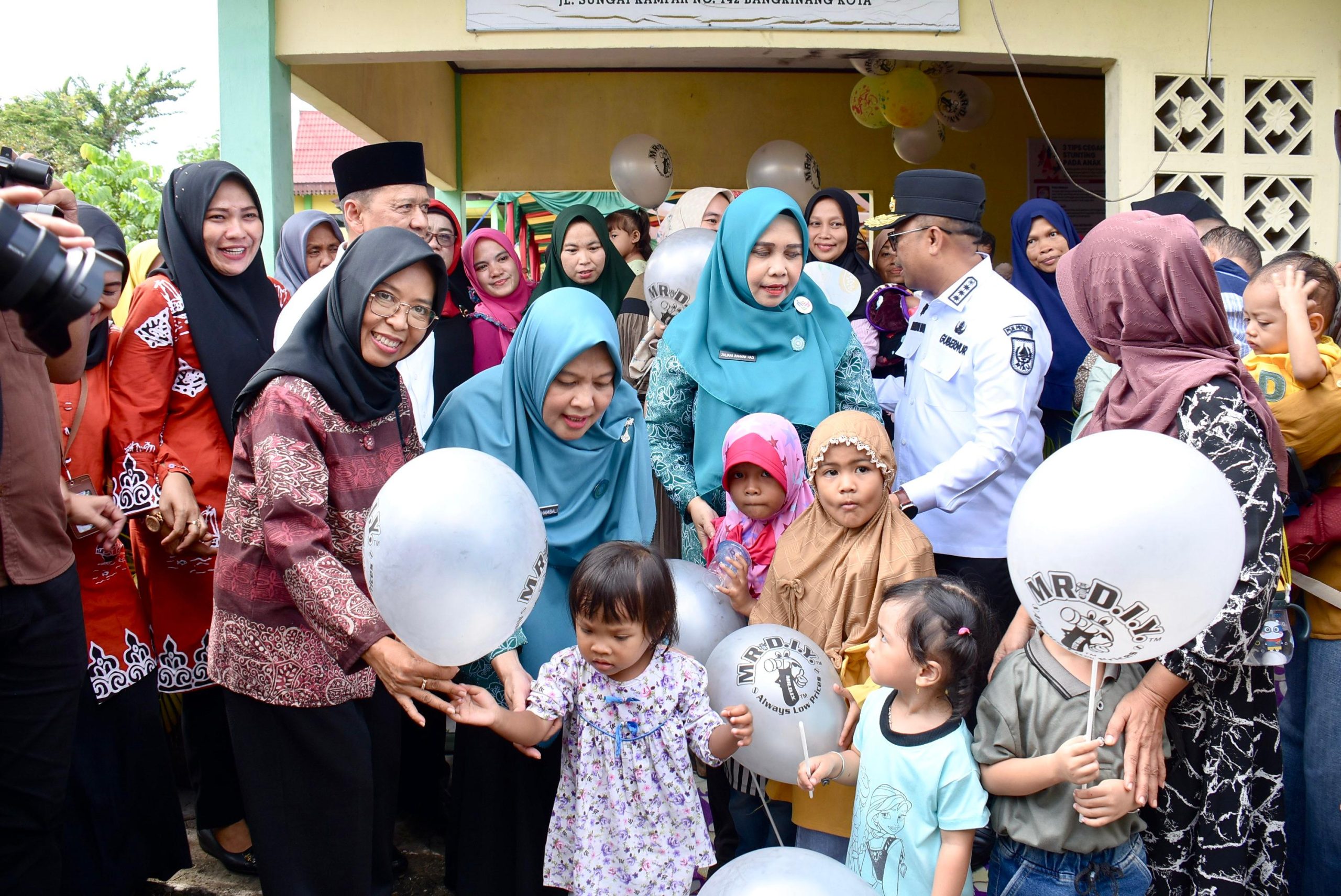 Bertempat di halaman Posyandu Melati Kelurahan Langgini Kecamatan Bangkinang Kota, rombongan untuk pertama kali tiba dan tampak disambut juga oleh Pj. Sekda Kampar Ramla, Kepala Puskesmas Bangkinang Kota dr. Yudi, para pengurus TP PKK Kabupaten Kampar, Para Tenaga Medis, Organisasi Mitra Paud, Kader Posyandu dan oleh para perwakilan dari OPD di lingkungan Pemerintah Kabupaten Kampar serta para pemuka masyarakat setempat.