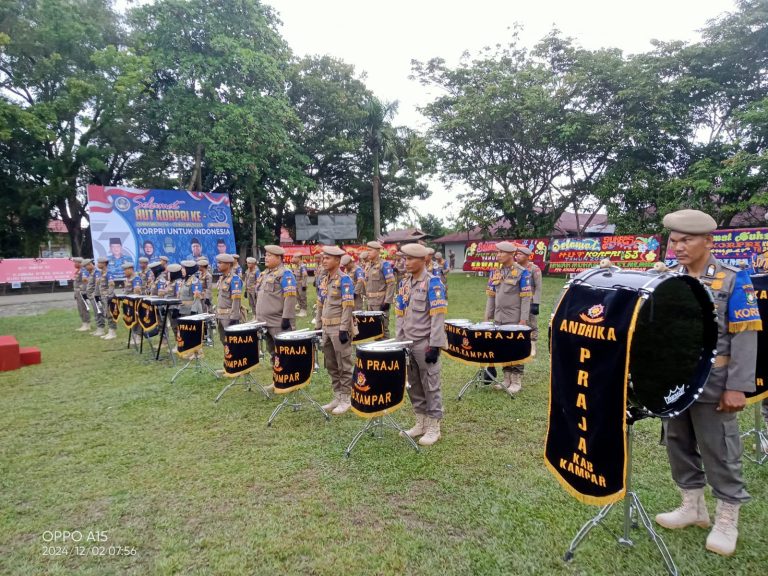 Tuahsejawat.com, Bangkinang — Marching Band Satpol PP Kampar Andhika Praja memiliki peran strategis dalam upacara HUT Korpri Ke -53 Tahun 2024 Tingkat Kabupaten Kampar yang berlangsung di Lapangan Pelajar Bangkinang Kota, Senin (02/12/2024) pagi.