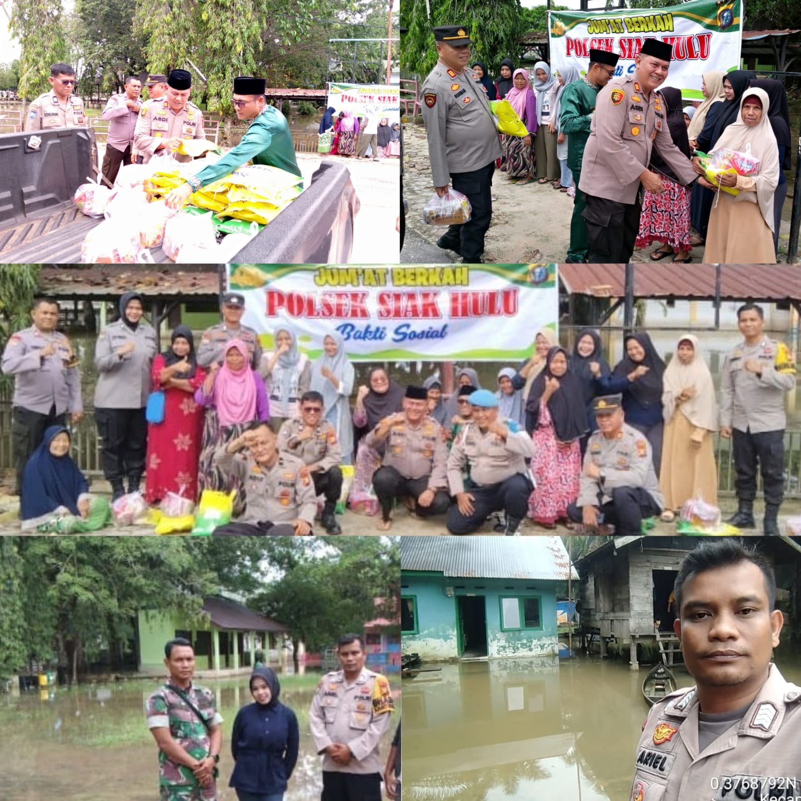 Menyikapi situasi tersebut, Polsek Siak Hulu berupaya meringankan beban masyarakat dengan menyelenggarakan kegiatan Jum’at Berkah. Pada Jumat (17/01/2025), Polsek Siak Hulu menyalurkan bantuan paket sembako kepada warga Desa Buluh Cina yang telah terdampak banjir.