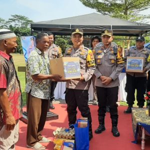 Sambut Idul Fitri 1445 H, Polres Kampar Bagi-bagi Sembako di Alun-alun Desa Tanjung Sawit